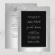 O Elegante Silver Glitter Foil Tudo em Um Convite De Casamento... Em um fundo de folha metálica prateada, nosso elegante convite de casamento "All in One" apresenta uma única camada de ombro prateada com seu texto de convite em um quadro preto com uma borda de folha de prata. A parte traseira do cartão contém todos os detalhes que você normalmente veria em cartões separados e pedaços de papel no pacote de casamento. Este convite de casamento ao estilo moderno foi concebido para ser elegante e consciente do orçamento... para não mencionar a poupança de tempo. Na parte de trás, há também um modelo de gráfico de código QR que você pode substituir por seu próprio código (ou excluir se você não planeja usar um). Todo texto de exemplo pode ser facilmente revisado com suas próprias informações sobre o modelo de personalização.
