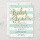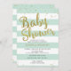 Estes convites adoràvel na moda do chá de fraldas caracterizam listras verdes e brancas modernas da hortelã com confetes da folha de ouro do falso. O texto do "chá de fraldas" é feito igualmente em um estilo bonito da folha de ouro do falso. Doce perfeitamente moderno e super! Os amigos e a família amarão a elegância simples, moderna deste cartão. Olha especialmente luxe com do "forma suporte" e "de papel do Shimmer Luxe da pérola" as opções. Veja minha loja para os artigos de coordenação (e me contacte se você precisa algo criado mais para coordenar!) ©2016 Weddings*n*Whimsy