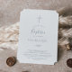 Este convite de batismo azul empoeirado com folhas mínimas é perfeito para um elegante batismo de bebê. O design apresenta uma silhueta verde simples e azul ardósia claro com estilo minimalista clássico.