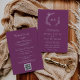 Este convite de casamento para eventos de framboesa é perfeito para um casamento de boho. A design apresenta uma simples silhueta verde folha em uma romântica cor violeta de verão com estilo minimalista de jardim boêmico. Salve o papel, incluindo a programação de fim de semana dos eventos na parte traseira do convite de casamento, em vez de em um cartão de cercado separado. Inclua um código QR para seus convidados para verificar seu site de casamento ou para RSVP facilmente on-line.