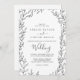 Este cartão de convite para casamento de cinzas escuras é perfeito para um casamento elegante. A design apresenta uma simples silhueta verde em cinzas de carvão com estilo clássico minimalista.
