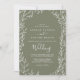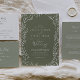Este mínimo de convite para casamento verde-escuro é perfeito para um casamento de boho. A design apresenta uma simples silhueta verde-verde-verde em verde-oliva com o estilo minimalista da boêmia montanhosa.