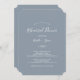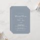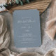 Este convite para janto de ensaio em folha azul e branco é perfeito para um ensaio de casamento elegante. A design apresenta uma simples silhueta verde em branco sobre um fundo azul empoeirado com estilo minimalista clássico.