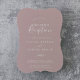 Este mínimo convite à recepção de casamento de rosa poeirento de folha é perfeito para uma festa de elopemento poste. A design romântica apresenta uma simples silhueta verde em uma massa cor-de-rosa roxa com estilo clássico de boho minimalista. As placas RSVP são vendidas separadamente ou você pode adicionar informações RSVP à parte traseira da placa.