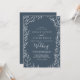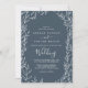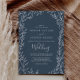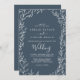 Este cartão de convite para casamento azul de folha é perfeito para um casamento elegante. A design apresenta uma simples silhueta verde em azul-cinza escuro com estilo minimalista clássico.