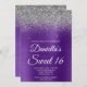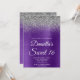 Crie seu próprio convite para comemoração de na moda 16 anos para sua filha. Faux decorativo gráfico cintilante prateado como borda superior. A arte digital de fundo apresenta uma folha de metal roxo roxo roxo e roxo, brilhante, estilo ombre. Personalize a cor do texto branco do convite ou os estilos de fonte. O texto "Sweet 16" também é personalizável. Os faíscas, brilho e folha de luxo serão criados por elementos artísticos que impressão gostam de uma foto.