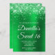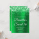 Crie seu próprio convite para comemoração de na moda 16 anos para sua filha. Gráficos brilhantes verdes brilhantes e decorativos de falso brilho formam uma borda superior. A arte digital de fundo apresenta uma esmeralda brilhante e verde clara, estilo ombre esfregada em metal. Personalize a cor do texto branco do convite ou os estilos de fonte. O texto "Sweet 16" também é personalizável. Os faíscas, brilho e folha de luxo serão criados por elementos artísticos que impressão gostam de uma foto.