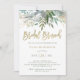 Esses elegantes e minimalistas convites para brunch bridal apresentam cores aquáticas tradicionais verde e folhas botânicas em um fundo branco limpo com moderno, falso roteiro manuscrito em ouro.