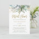 Esses chás de panela virtuais elegantes e minimalistas ou convites para chás de casamento apresentam cores vivas e folhas botânicas em um fundo branco limpo com um roteiro manuscrito moderno e falso em ouro. Você pode ter que comemorar seu chá pelo correio, mas você ainda pode enviar belos convites!