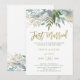 Estes elegantes e minimalistas convites para brunch de posto destacam as tendências da aquarela verde e folhas botânicas em um fundo branco limpo com moderno, falso dourado escrito à mão que diz "recem casados".