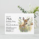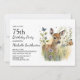 Capture a beleza da natureza com o elegante 75º convite de aniversário feminino apresentando uma pintura impressionante de um veado bebê fascinado por uma borboleta. Perfeito para uma vida selvagem ou celebração de aniversário com tema animal, este convite inspirado na arte irá certamente deliciar amantes da natureza de todas as idades. Este cartão pode ser projetado para qualquer pessoa de qualquer idade. Entre em contato comigo para obter assistência com sua personalização ou para solicitar produtos adicionais de correspondência ou coordenação para sua celebração.