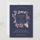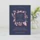 Este belo e na moda, convite botânico para casamento apresenta um cheio da moda de folhas cor-de-água rosa e pinceladas em um rico fundo azul da meia-noite, e uma cor rosa pincelada na parte de trás do cartão.