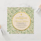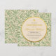 Este convite de confirmação botânico e elegante, sem distinção de gênero, tem um padrão de folhas de salgueiro verde no fundo e no verso. O texto está em um círculo que tem a cor de papel antigo e bordas de folha de ouro falso. Há uma cruz dourada (falsa) acima do texto. O nome é escrito em uma fonte caligráfica elegante e dourada, o restante em letras maiúsculas; a ocasião também é escrita em letras douradas, o restante do texto em preto.