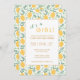 Convite para Chá de fraldas da Menina de Limão Amarelo - Celebre a chegada da sua bebê precioso com este simples, fofo e adorável 'Convite para Chás de fraldas' com fruta de limão amarelo cercado por um padrão de folhagem das folhas. Todos os textos estão pré-organizados para que você personalize fácil e rapidamente com os detalhes do seu chá de fraldas.