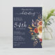 Este design apresenta elementos florais elegantes em tons de ouro, burgundy, verdes e beges no marinho azul para um convite de aniversário. Explore a coleção nesta página para localizar itens coordenadores nesta design.