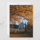 Uma vista de uma igreja do Cemitério Hanover, em Hanover Center, na cidade de Hanover, Massachusetts, emoldurada com mapas de açúcar na folhagem de queda de ouro, está impressa neste cartão postal vertical de 5" x 7". Este cartão está também disponível em formato horizontal. Esta é parte de um conjunto de papelaria correspondente que inclui um cartão de saudação, 2 cartões postais de tamanho diferente em formato horizontal e vertical, etiquetas de endereço de retorno, envelopes, selos de envelope e invólucros. Esta imagem pode ser transferida para outros produtos. Você pode personalizar um dentro de mensagem usando os vários estilos de fonte e cores diferentes do Zazzle ou remover o texto e deixá-lo vazio. Se precisar de ajuda, por favor, não hesite em me contactar, e eu ficarei muito feliz em ajudá-lo. Você pode entrar em contato comigo na minha página do Facebook de Wolf Moon e Design. Direitos autorais originais de 2015 por Karen Cofsense.