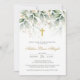 Convites Folhagem Dourada Verde Cruzando Bebê Batismo