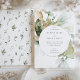 Este convite é uma mistura poética da natureza e celebração, apresentando um círculo sereno de aquarela, enquadrado por uma folhagem verde esmagadora e acentuado com salpicos de ouro. Ele transmite uma sensação de sofisticação e elegância orgânica, perfeita para um casal que aprecia a beleza dos elementos naturais em seu dia especial. As texturas de aquarela macia em tons de sábio, hortelã e verde-florestal, aliadas ao ouro brilhante, criam um design luxuoso e convidativo. Este convite de casamento é um prelúdio para um dia tão eterno e radiante quanto o amor do casal.