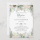 Estes convites para o Batismo floral com aquarelas apresentam muitas folhas verdes com flores em tons suaves de verde, creme, sábio e marrom em fundo branco.