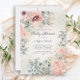 Chá de fraldas elegante com belas flores cor-de-água rosa e cor-de-rosa e folhas verdes sábias em um fundo de diamante de ouro mágico. Entre em contato comigo para obter assistência com a personalização ou para solicitar a correspondência ou a coordenação de produtos Zazzle para o seu partido.