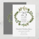Com uma elegante grinalda de folhagem florestal, este cartão de salvar a data de aniversário de casamento de 25 anos pode ser personalizado com as suas informações de aniversário de prata. O verso apresenta uma grinalda floral correspondente emoldurando as datas do seu aniversário em texto branco elegante sobre um fundo prateado. Concebido por Thisisnotme©