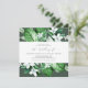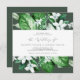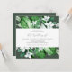 Este convite de casamento quadrado verde caçador com folhagem florestal é perfeito para um casamento de verão ou outono. O design moderno boêmio apresenta folhas e elementos botânicos em verde esmeralda, sage e oliva em aquarela com ramalhetes de flores brancas elegantes.