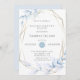 Festa de solteira | Emparelhámos uma armação de arame de terrário de ouro com azul poeirento pálido e folhagem lilática muito leve que a rodeia para mostrar os detalhes da sua festa. O inverso é um azul pálido e empoeirado. Fresco e simples, mas maravilhosamente elegante. Design criado para o BarefootBride™ por ©WhimsicalArtwork™ criamos esta modelo para facilitar a personalização com as suas próprias informações. Isto é parte de uma suíte coordenada de papelaria de casamento.