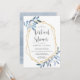 Planejando um chá virtual em vez de um evento em pessoa? Junte os entes queridos com estes belos convites para chuveiros de noivas ou bebês com um tema foliar de floresta. A design apresenta a inscrição das cinzas enquadrada por uma falsa borda geométrica dourada e folhagem de cor azul gelada, folhas e bagas brancas. Uma opção moderna em um esquema natural de cores para a noiva ou a noiva ou chá de fraldas do tema da natureza, você pode usar os campos de texto do modelo para adicionar detalhes de sua reunião virtual, incluindo chat de vídeo ou link de videoconferência, informações de registro e endereço de correio.