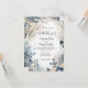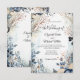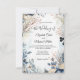 O design apresenta um arranjo etéreo e macio de tons sujos, azuis e mudados, com folhagem delicada, bagas e flores que circundam as bordas. A estrutura é predominantemente decorada com folhas do estilo aquarela, flores de algodão e bagas escuras, dando a ela uma sensação rústica mas elegante. A área central é deixada vazio, ideal para texto ou detalhes de eventos, cercada por formas orgânicas que evocam um humor sereno e autóctone. Este sofisticado, inspirado na natureza funcionaria lindamente para uma coleção de casamentos com uma atmosfera romântica e eterno.