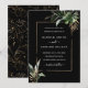 Este convite para o casamento apresenta monstera de aquarela, folhas de palmeiras, folhas de bananeiras, folhas tropicais exóticas e folhas de ouro falso com uma falso estrutura de retângulo dourado. É perfeito para um casamento de praia ou destino.