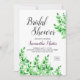 Este chá de panela oferece belas paisagens de água verde e texto caligráfico. O fundo branco de na moda é acentuado com a cor d'água verde na parte inferior e no canto superior direito. O nome da noiva e o fundo é uma ameixa escura e pode ser mudado para qualquer cor escolhendo personalizar.