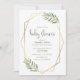 Convide amigos e família para comemorar a mãe a estar com este convite de chá de fraldas de folhagem verde e borda de ouro inspirado na Boêmia. Personalize com os detalhes do seu partido. O convite reverte para coordenar o verde.