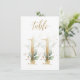 Belo cartão de número de mesa com um motivo botânico - uma ilustração aquática das folhas verdes e douradas. Mesa 11 Verifique todos os números disponíveis