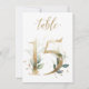 Belo cartão de número de mesa com um motivo botânico - uma ilustração aquática das folhas verdes e douradas. Mesa 15. Verifique todos os números disponíveis