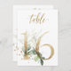 Belo cartão de número de mesa com um motivo botânico - uma ilustração aquática das folhas verdes e douradas. Mesa 16. Verifique todos os números disponíveis