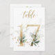 Belo cartão de número de mesa com um motivo botânico - uma ilustração aquática das folhas verdes e douradas. Mesa 17. Verifique todos os números disponíveis