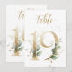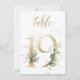 Belo cartão de número de mesa com um motivo botânico - uma ilustração aquática das folhas verdes e douradas. Mesa 19. Verifique todos os números disponíveis