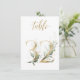 Belo cartão de número de mesa com um motivo botânico - uma ilustração aquática das folhas verdes e douradas. Mesa 32. Verifique todos os números disponíveis