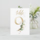 Belo cartão de número de mesa com um motivo botânico - uma ilustração aquática das folhas verdes e douradas. Mesa 9. Verifique todos os números disponíveis