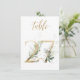 Belo cartão de número de mesa com um motivo botânico - uma ilustração aquática das folhas verdes e douradas. Mesa 27. Verifique todos os números disponíveis
