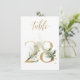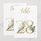 Belo cartão de número de mesa com um motivo botânico - uma ilustração aquática das folhas verdes e douradas. Mesa 28. Verifique todos os números disponíveis