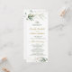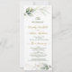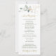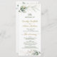 Cartão do Programa de Casamento Elegante com folhagem verde e ouro em estilo aquarela e confete de efeito de ouro.