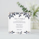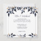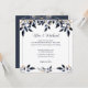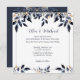 Folhas Azuis com Convite Dourado para Casamento, desenhado com folhas fluentes em tons claros e escuros de azul com realces Dourados. O texto frontal inclui: Os nomes da Noiva e do Groom, Data de Casamento, Hora e Local e Recepção a Seguir. O texto inverso inclui: Detalhes de RSVP. Para personalizar, simplesmente insira seu texto em nosso modelo fácil, substituindo o exemplo. Certifique-se de ver todas as Folhas Azuis com a Coleção de Casamentos Dourados para papelaria e acessórios correspondentes.