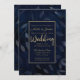 Convites Folhas Botânicas Azul Escuro Casamento Moderno Chi