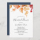 Este outono deixa branco com instruções o convite de janto de ensaio é perfeito para um ensaio de casamento de outubro. O design rústico apresenta folhas de outono de cor d'água pintadas à mão em tons de sol de amarelo, laranja queimado e vermelho queimado. Adicione instruções de condução ou mais informações à parte traseira do convite.