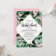 Chá de panela Palm Deixa Convites - decorado com folhas de palma em fundo rosa.