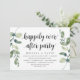 Convite temático de casamento rústico moderno com folhas de eucalipto e grafia preta (com título: festa para sempre feliz). É perfeito para o seu casamento simples e recepção de celebração pós-casamento. Adicione seus detalhes em fonte / letra preta correspondente.