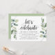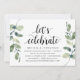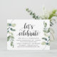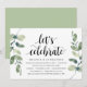 Convite de casamento com tema de folhas de eucalipto rústico moderno, cartão de convite com letra preta (com título do cartão: vamos celebrar). É perfeito para o seu casamento íntimo / recepção de celebração pós-casamento. Adicione seus detalhes em fonte preta correspondente.