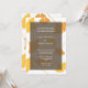 Aprecie seus convidados com este elegante mas moderno ginkgo deixa convites para casamento. O texto é definido em tipos clássicos em cima de um bloco de cores delimitado, que sobrepõe as folhas de ginkgo de ouro. Simplesmente substitua o texto de exemplo pelas suas informações de casamento. Deixa o motif continuar na parte de trás dos convites.