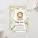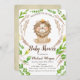 Um belo duche de elefantes convida um adorável leão bebê com folhas de coroa e de árvore. Esses convites para chuveiros de bebês elefantes são facilmente personalizados para seu evento simplesmente adicionando seus detalhes de evento.